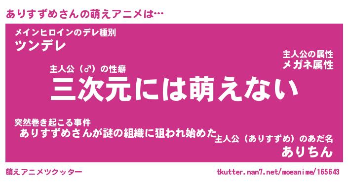 | 男性向けラノベタイトル風あだ名 | 『アリスズメアートオンライン』 |