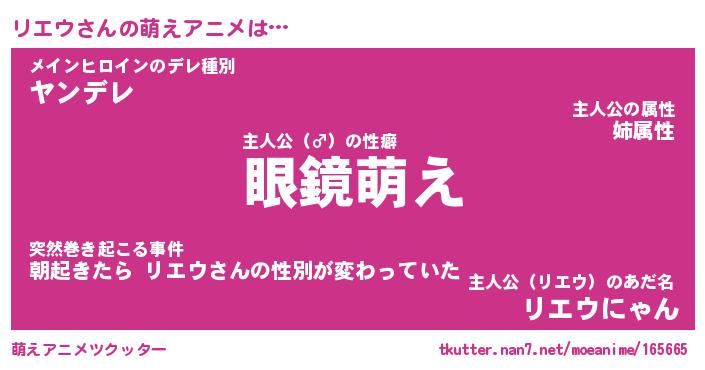 | 男性向けラノベタイトル風あだ名 | 『リエウの憂鬱』 |