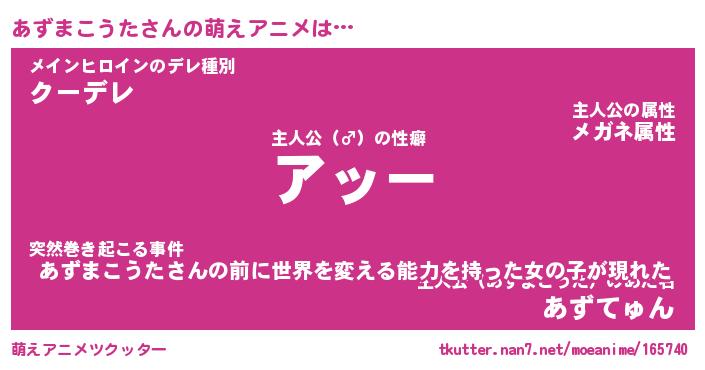 | 女子向けラノベタイトル風あだ名 | 『誰かこのあずまこうたを説明してください! ~契約から始まるウェディング~』 |