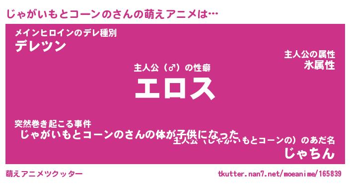 | 女子向けラノベタイトル風あだ名 | 『誰かこのじゃがいもとコーンのを説明してください! ~契約から始まるウェディング~』 |
