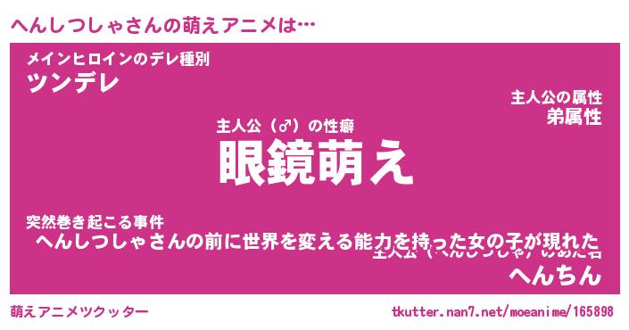 | 男性向けラノベタイトル風あだ名 | 『へんしつしゃの憂鬱』 |
