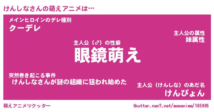 | 男性向けラノベタイトル風あだ名 | 『けんしなの憂鬱』 |