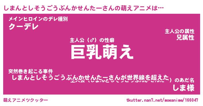 | 男性向けラノベタイトル風あだ名 | 『しまんとしそうごうぶんかせんたーの憂鬱』 |