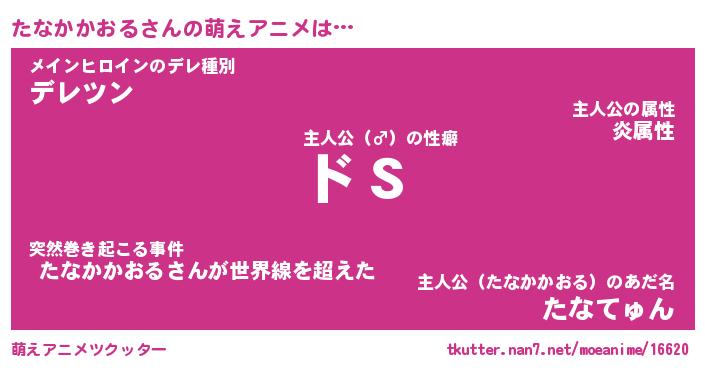 | 女子向けラノベタイトル風あだ名 | 『(仮)たなかかおるのやんごとなき事情』 |