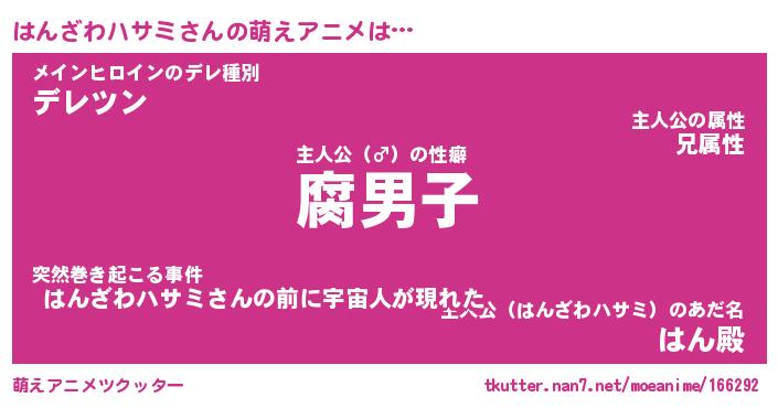 | ヘコむあだ名 | 『はんにー』『なまこ酢』『はんお』 |