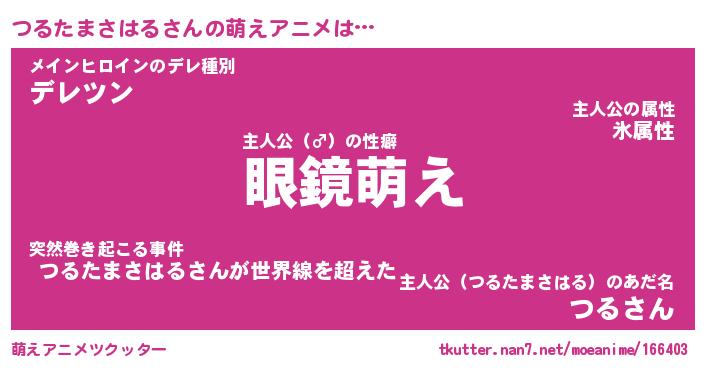 | 男性向けラノベタイトル風あだ名 | 『つるたまさはるの憂鬱』 |