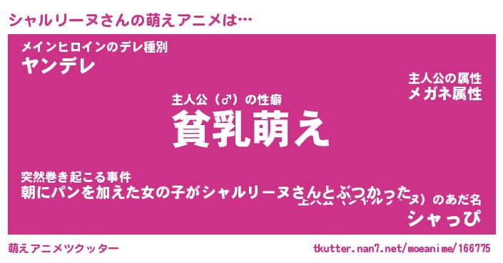 | 男性向けラノベタイトル風あだ名 | 『シャルリーヌの憂鬱』 |