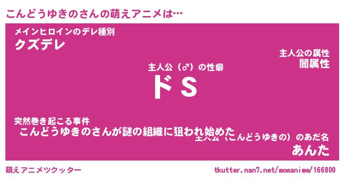 | 男性向けラノベタイトル風あだ名 | 『こんどうゆきのの憂鬱』 |