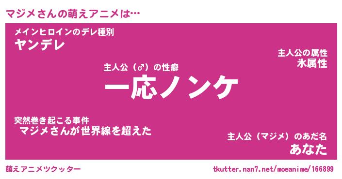 | 男性向けラノベタイトル風あだ名 | 『マジメアートオンライン』 |