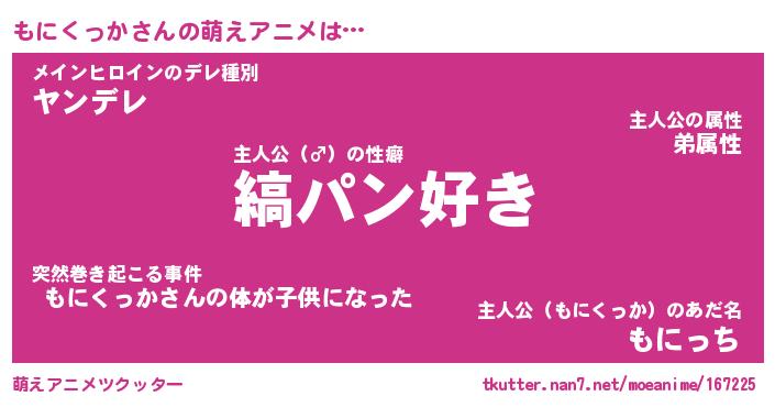 | 男性向けラノベタイトル風あだ名 | 『もにくっかの憂鬱』 |