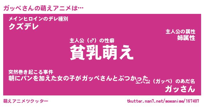 | 胡散臭い通販商品みたいなあだ名 | 『必ず成功するブレスレット…その名も「ガッペ」』 |