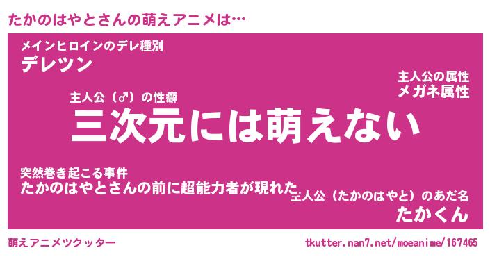 | 男性向けラノベタイトル風あだ名 | 『タカノハヤトアートオンライン』 |