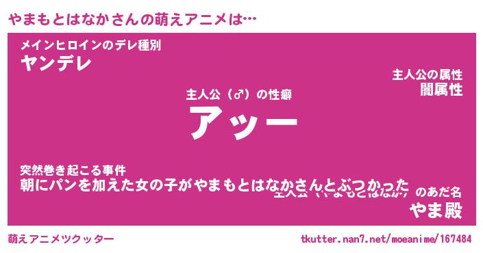 | 2回繰り返すあだ名 | 『やまやま』『ややまま』『ぬめぬめ』 |