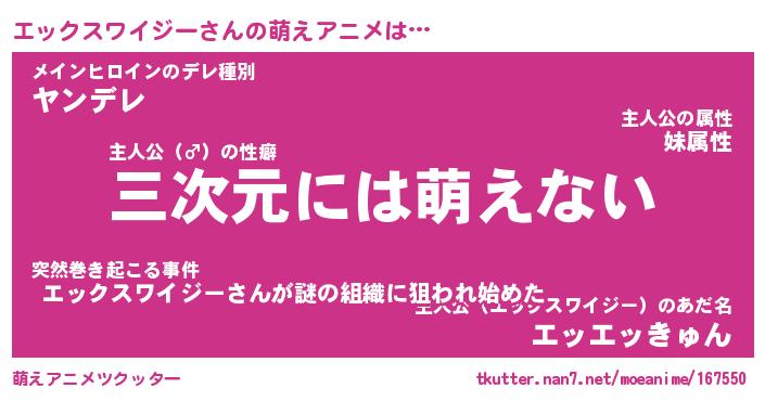 | 男性向けラノベタイトル風あだ名 | 『エックスワイジーアートオンライン』 |