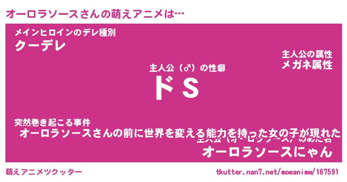 | 男性向けラノベタイトル風あだ名 | 『オーロラソースの憂鬱』 |