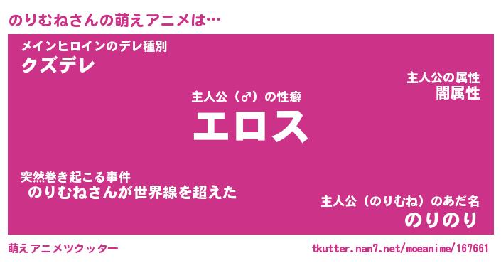 | ヘコむあだ名 | 『のりにー』『なまこ酢』『のりっ子』 |