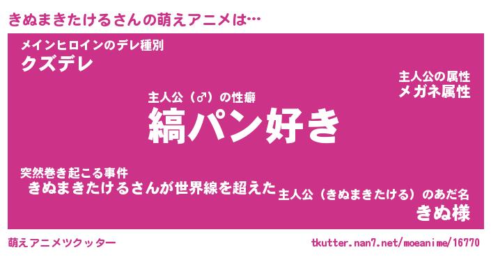 | 男性向けラノベタイトル風あだ名 | 『きぬまきたけるの憂鬱』 |