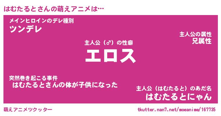 | 女子向けラノベタイトル風あだ名 | 『誰かこのはむたるとを説明してください! ~契約から始まるウェディング~』 |