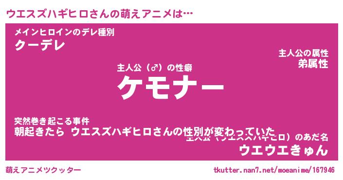 | 女子向けラノベタイトル風あだ名 | 『誰かこのウエスズハギヒロを説明してください! ~契約から始まるウェディング~』 |