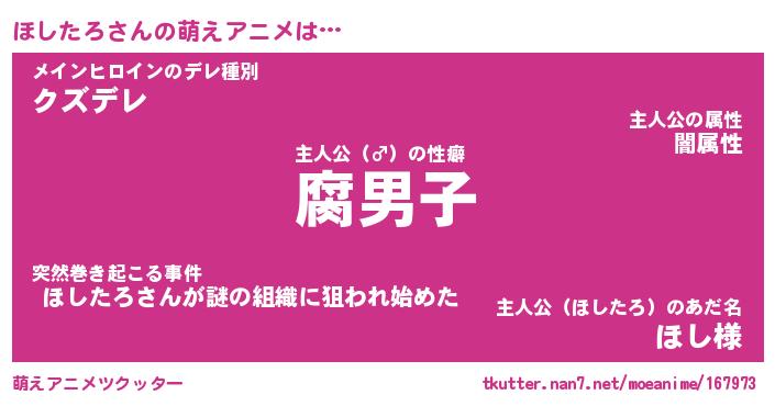 | ヘコむあだ名 | 『ほしにー』『なまこ酢』『ほしお』 |