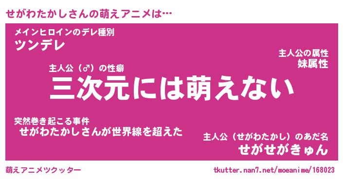 | 男性向けラノベタイトル風あだ名 | 『セガワタカシアートオンライン』 |