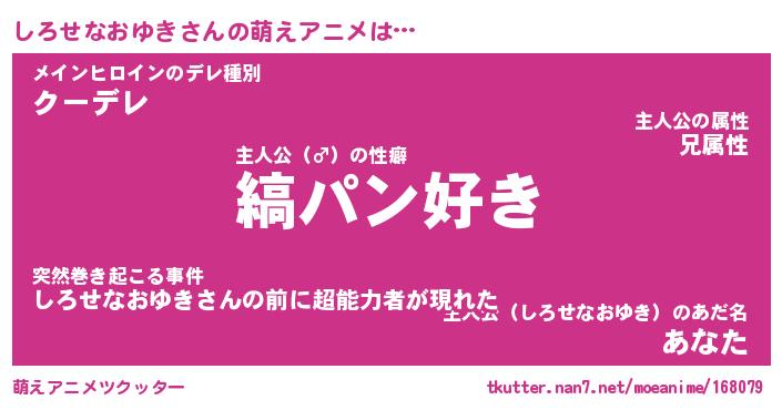 | 男性向けラノベタイトル風あだ名 | 『しろせなおゆきの憂鬱』 |