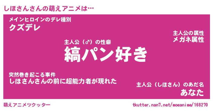 | 男性向けラノベタイトル風あだ名 | 『しほさんの憂鬱』 |