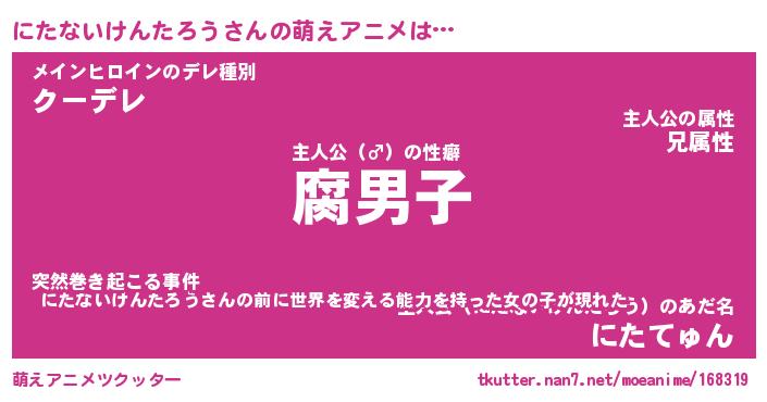 | 胡散臭い通販商品みたいなあだ名 | 『モテモテ間違いなし霊験あらたかなお札…その名も「にたないけんたろう」』 |