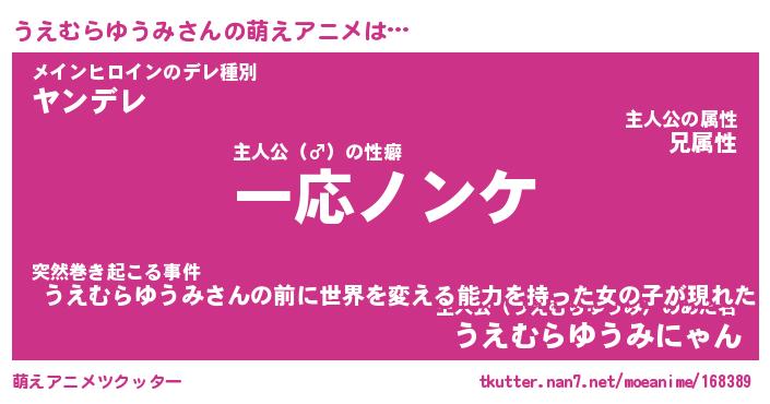 | 女子向けラノベタイトル風あだ名 | 『誰かこのうえむらゆうみを説明してください! ~契約から始まるウェディング~』 |