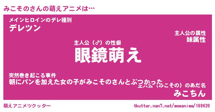 | 男性向けラノベタイトル風あだ名 | 『みこそのの憂鬱』 |