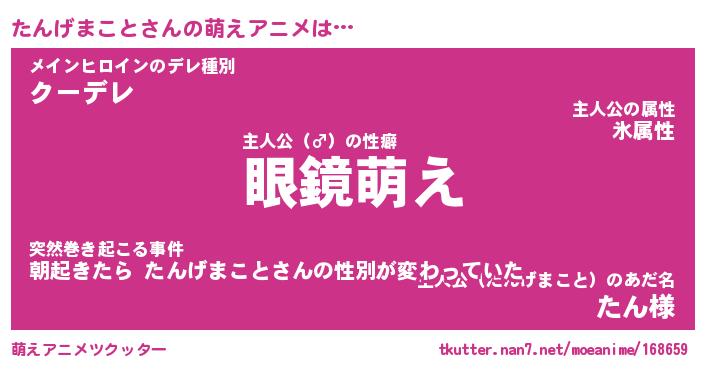 | 男性向けラノベタイトル風あだ名 | 『たんげまことの憂鬱』 |