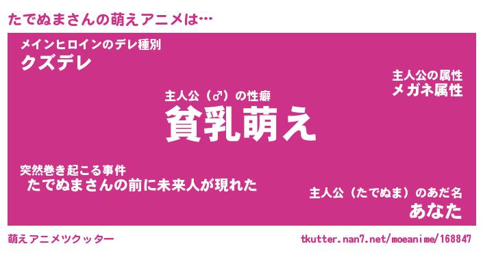 | 男性向けラノベタイトル風あだ名 | 『たでぬまの憂鬱』 |