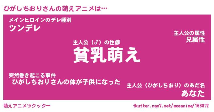 | 女子向けラノベタイトル風あだ名 | 『(仮)ひがしちおりのやんごとなき事情』 |