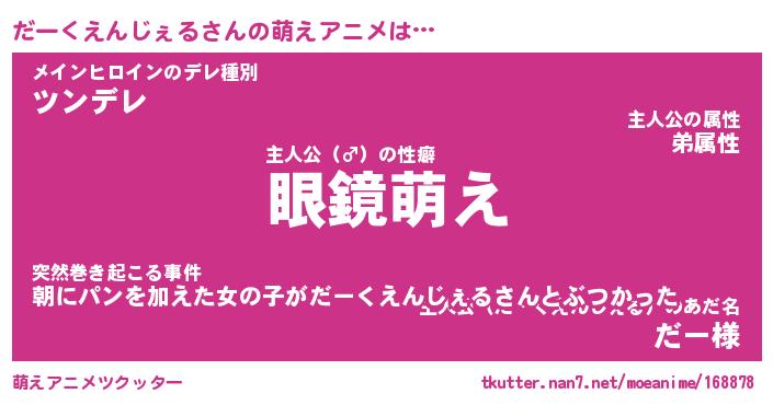 | 料理風あだ名 | 『節約★だーくえんじぇると油揚げの玉子丼』 |