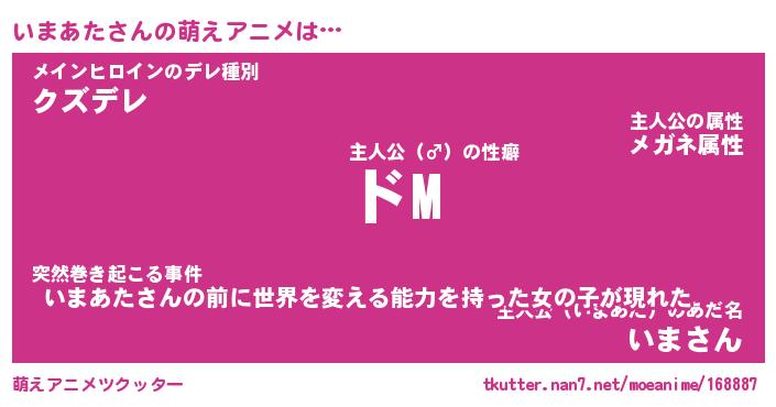 | 男性向けラノベタイトル風あだ名 | 『いまあたの憂鬱』 |