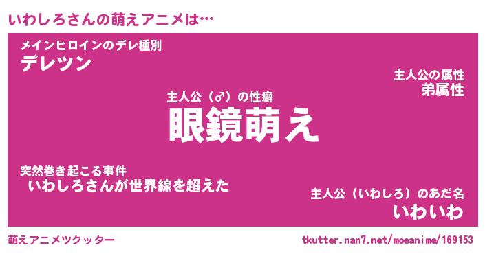 | 男性向けラノベタイトル風あだ名 | 『いわしろの憂鬱』 |