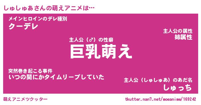 | 男性向けラノベタイトル風あだ名 | 『しゅしゅあの憂鬱』 |