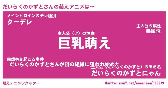 | 男性向けラノベタイトル風あだ名 | 『だいらくのかずとの憂鬱』 |
