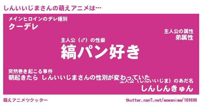 | 男性向けラノベタイトル風あだ名 | 『しんいいじまの憂鬱』 |