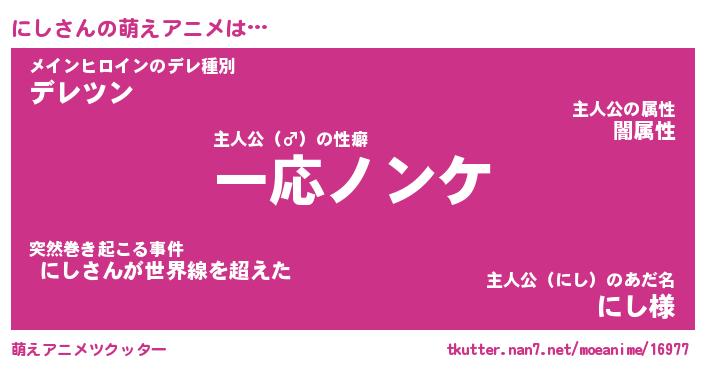 | ポケモン風あだ名 | 『ニシチュウ』『ニシダネ』『ヒニシ』 |