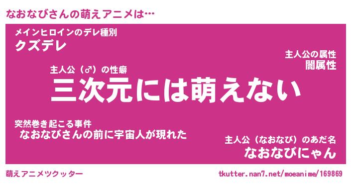 | 男性向けラノベタイトル風あだ名 | 『ナオナビアートオンライン』 |