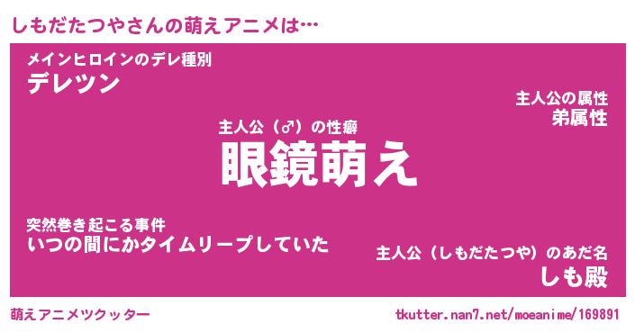 | 男性向けラノベタイトル風あだ名 | 『しもだたつやの憂鬱』 |