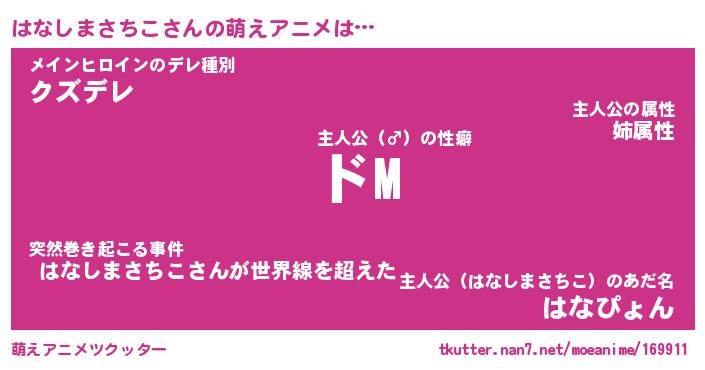 | 男性向けラノベタイトル風あだ名 | 『はなしまさちこの憂鬱』 |