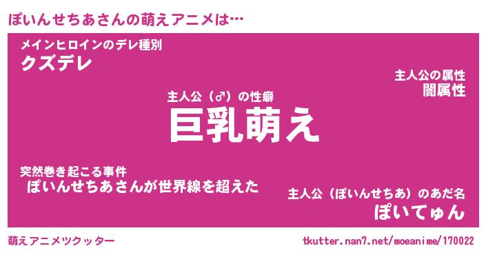 | 男性向けラノベタイトル風あだ名 | 『ぽいんせちあの憂鬱』 |