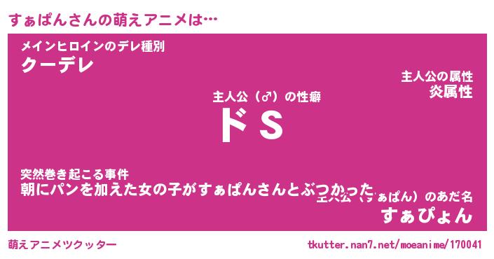 | 男性向けラノベタイトル風あだ名 | 『すぁぱんの憂鬱』 |