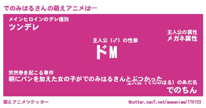| 女子向けラノベタイトル風あだ名 | 『(仮)でのみはるのやんごとなき事情』 |