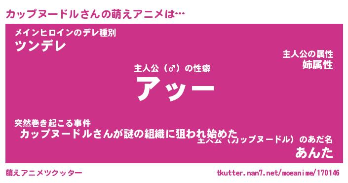 | 男性向けラノベタイトル風あだ名 | 『カップヌードルアートオンライン』 |