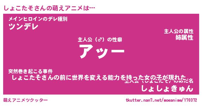 | 女子向けラノベタイトル風あだ名 | 『誰かこのしょこたそを説明してください! ~契約から始まるウェディング~』 |