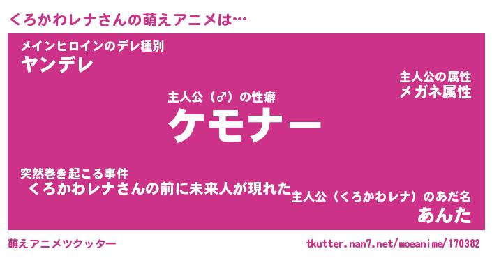 | ヒーロー風カッコイイあだ名 | 『スーパークロカワレナ』『天弓騎士クロ』 |