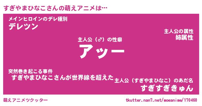 | 男性向けラノベタイトル風あだ名 | 『スギヤマヒナコアートオンライン』 |